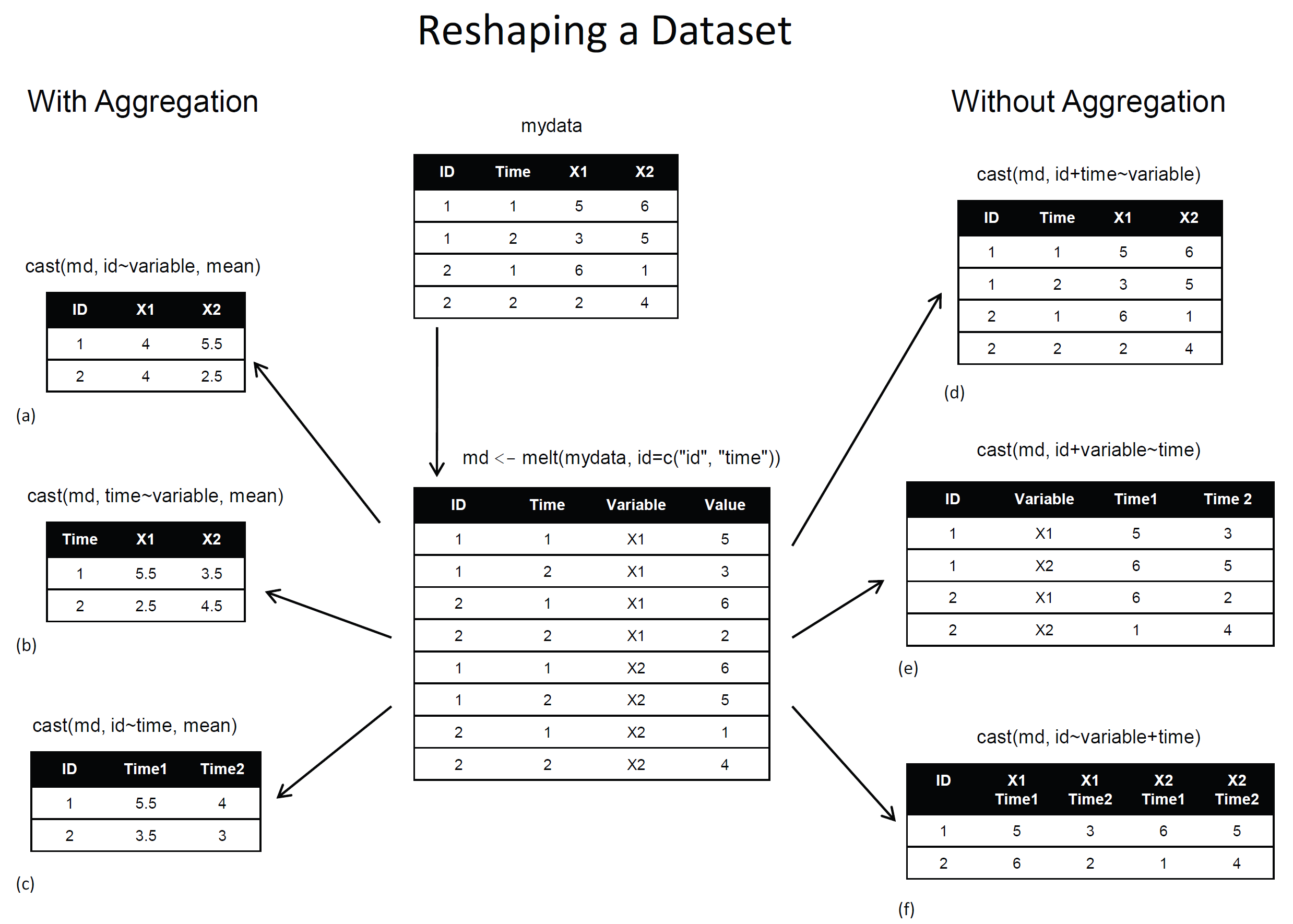 reshape2melt: wide format -> long formatdcast: long format -> wide format